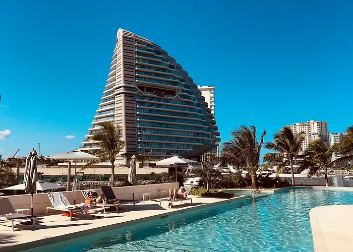 Disfruta de tus vacaciones en Cancún en el Marina Corazón Sea View - Condo Puerto Cancún. Ideal para quienes buscan una experiencia auténtica, está situado a 25 minutos a pie de la Iglesia de Cristo Rey y a 3 km del Galeón Capitán Hook. Los huéspedes pueden darse un chapuzón en la piscina y relajarse tras un largo día.